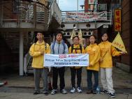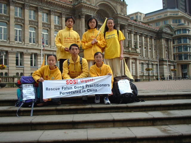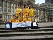 上午十时半,英国伦敦学员刘雪枚、牛津学员雪尼和塞门,和伯明翰当地四名学员,一行七人,在英国伯明翰市维多利亚广场出发,开始伯明翰市至伦敦,全长约三百五十公里的sos长途步行。其中该sos长途步行活动的发起人刘雪枚和牛津学员雪尼,将走完全程。