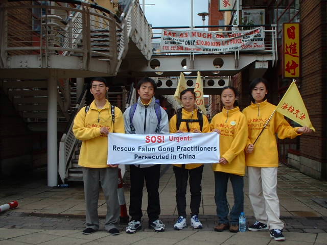 伦敦学员、英国著名大学工商硕士生刘雪枚,当她得知中国万家劳教所发生了十五名女法轮功学员被虐致死特大惨案,她萌生了一个愿望,希望透过她的sos长途自费步行,呼吁英国沿途各市镇善良的人们,关心中国法轮功学员的悲惨遭遇,加入国际性的援助法轮功学员的紧急救援行动,制止江泽民邪恶流氓集团在中国对法轮功学员长达两年的残酷虐杀。