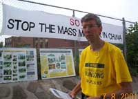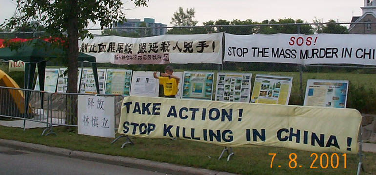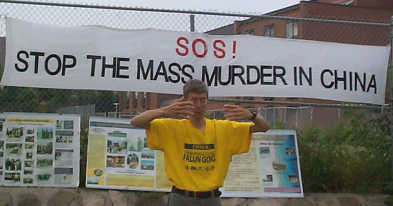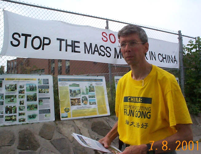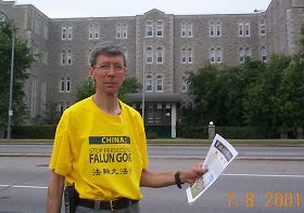 加拿大西人学员杰瑞开始在中国使馆前连续300小时静坐呼吁制止江泽民集团对法轮功学员的虐杀