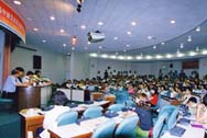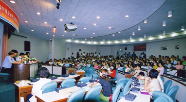 下午两点,记者会开始,场面肃静,现场涌入大批媒体与报纸电视等数十位记者,台湾法轮功学员也从各地赶来,声援国内受迫害的同修。