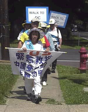昨天,李从纽约市到达巴克斯郡。她是步行走来的。她是几十名长途跋涉到华盛顿的法轮功学员中的一名。这个活动是全美呼吁运动的组成部份,目的是唤起人们对在中国遭受拘留、毒打和杀害的法轮功学员的关注。