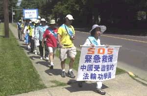 【明慧网2001年7月12日】巴克斯郡信使报(Bucks County Courier Times)2001年7月10日刊登文章,报道法轮功学员正在穿越巴克斯郡前往华盛顿DC,以唤起人们对中国迫害法轮功修炼者的关注。文章写道: