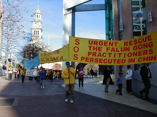 游行从皇后大道开始,经海关街至三文街后又回到皇后大道,共进行了1小时40分钟。在此期间,新西兰国家电视台和一家华文报社采访了学员。之后,学员们又赶到中国驻奥克兰总领事馆继续进行呼吁活动。