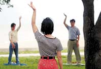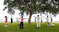 海岸边的大橡树下,有一块安静的绿洲。十几人静静地站成一圈,随着一个小录音机播放的柔和音乐整齐地运动着。他们象是在翩翩起舞,只是以慢动作进行。