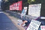 7月10日,大法弟子曼苏首先开始了每天24小时连续在中国驻温哥华领事馆门口的静坐救援活动。巨大的“紧急救援阻止虐杀”的中、英文横幅醒目地挂在流水般的车道边上,小小的简易帐篷向世人表达了他坚定的决心。曼苏的行动得到了温哥华全体大法学员的支持与响应,几天来,其他大法学员源源不断地来到领事馆门口,和曼苏一起坚持日复一日的24小时静坐呼吁。