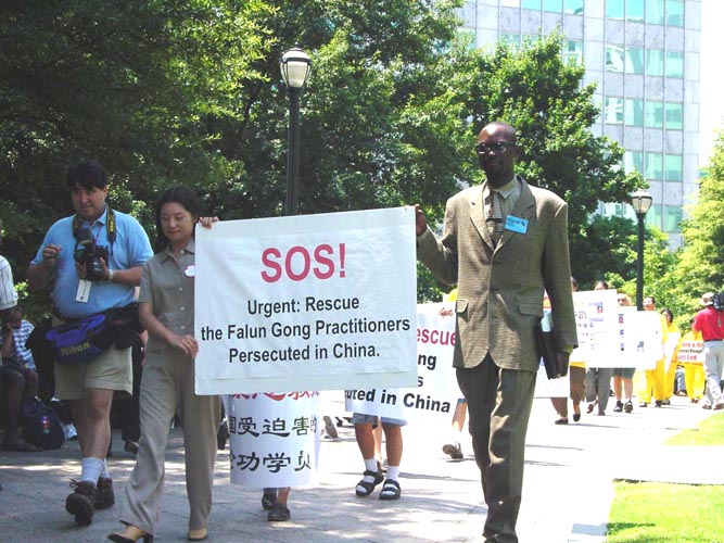【明慧网2001年7月16日】世界日报费城讯,成员年龄从十六岁到七十三岁的二十名从波士顿、纽约出发的法轮功学员,以徒步至华盛顿的苦行方式,希望唤起世人对在大陆遭迫害的同修给予人道关注;他们日前抵达费城,并在独立宫前举行记者会,包括五家电视台及费城询问报都做了报导。