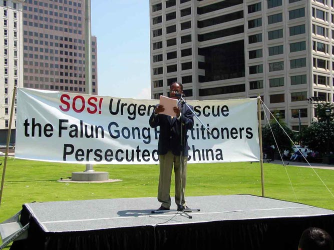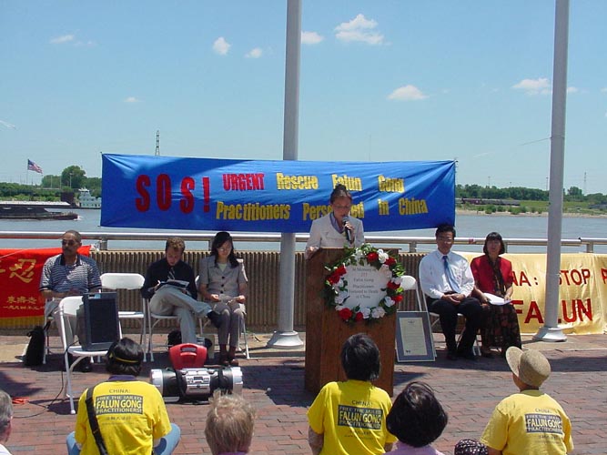 当地最大的一家报社圣路易斯邮报(St.Louis Post Dispatch)的记者赶了60英里的路程参加新闻发布会,并对学员进行了详细的采访,直到新闻发布会结束后还在和我们交谈。她说,“我急于知道事实,并做出负责任的报导”。(译者注:四个电视台均在当晚的新闻节目中报导了这次活动)。密苏里的联邦众议员莱西-克雷派助手马克-欧度姆出席会议并致词。联邦众议员,民主党领袖理查德-哥菲提也写信给我们。两位议员均表示了他们强烈的关注和支持,并呼吁中国政府停止对法轮功学员的迫害。会议期间,麦克风偶有间断。一位学员说,当她发正念时,麦克风立即就又响了。