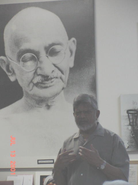 甘地先生对法轮大法早有所闻,对法轮大法弟子的非暴力护法行动也持赞许态度。当我们告诉他关于洛杉矶学员的长途旅行后,即表示愿意主持一个关于法轮功的研讨会。非暴力学院的工作人员给了我们大力的支持。他们为我们申请了会议室和电子设备,还精心设计了研讨会的海报。我们一起对这一活动开展了许多宣传。