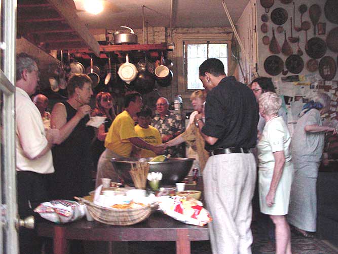 晚上北上自行车队员们出席了当地的法轮功之友Sam先生在他的家里举办的欢迎晚会。来参加晚会的除了两个当地的学员和4个车队队员之外,其余的都是美国人。这些美国人非常友好善良,他们对学员们的长途自行车旅行非常感兴趣。学员们给他们讲法轮功学员在中国被残酷杀害和虐待的情况和中国江泽民集团派间谍来美国甚至到法轮功学员家里进行骚扰和破坏的故事。很多客人对法轮功所遭受的这一切而感到震怒。