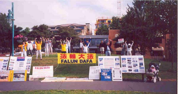 7月16日我们一行20人正式出发。在这一行人中,有四位年已花甲的老人,有年近8岁的儿童,有好不容易才积攒了一星期休假的上班族,有年轻的母亲。我们为了什么呢?一位学员说,江泽民集团阻挡真相的传出,我们做的就是让人们真正听到了解正在中国发生的残酷迫害法轮功学员的事实真相,看到江泽民集团的这些惨无人道的禽兽行径,善良的人们怎么能不动心呢?更多人知道,更多的人支持法轮功,就多一份救援大陆受迫害弟子的力量,就多一份人间正义。