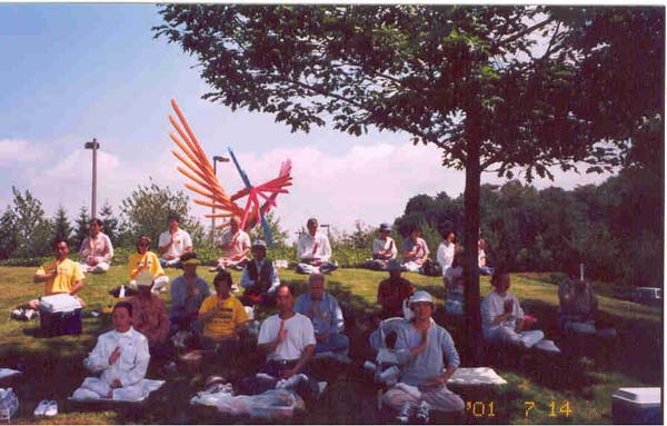 7月14日,上午天晴日朗,学员们骑了近4个小时,到达了弗吉尼亚州的里士满(Richmond)市。下午他们和当地的学员一起在就近的一个公园里炼功洪法。