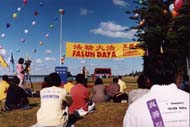 这天,阳光灿烂、风和日丽,湛蓝的海水碧波荡漾。在库克公园大法弟子们在悦耳的炼功音乐声中,缓、慢、圆的展示着功法,祥和、宁静的炼功场面吸引着游人们的关注,有感兴趣者当即便跟着学炼起来。还有不少游人被周围悬挂的“法轮大法”、“真、善、忍”横幅、洪法图片、酷刑真象图片展板所吸引。人们询问后知道了更多真象,主动签名以表支持和关注。