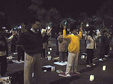 晚上7点多钟,学员们陆续来到荷曼广场,挂起了向世人呼吁的横幅和介绍大法9年洪传历程的图片。天色渐晚,学员们点起一支支烛光,开始炼功。电视2台和星岛日报记者进行了现场采访。