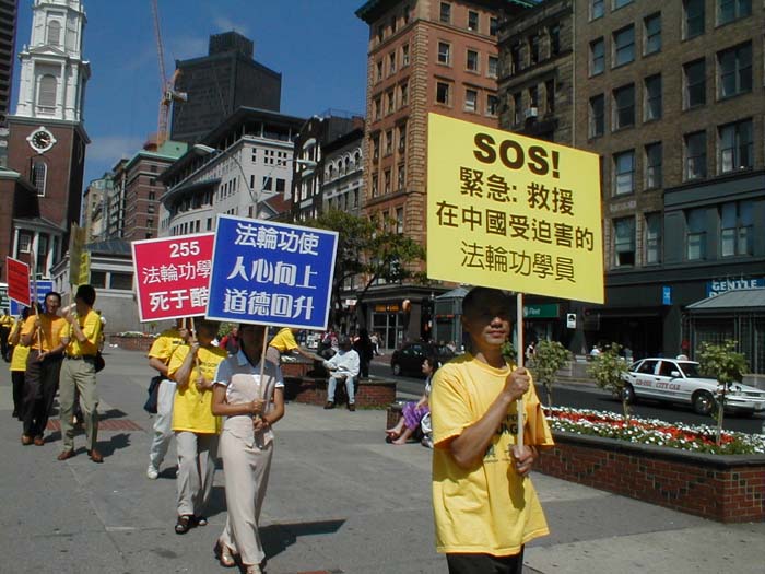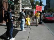 第一天,当我们将展板在地面上铺开,准备往展板上张贴时,就有不少政府官员及工作人员停下来仔细观看,许多人都被这些酷刑折磨的惨不忍睹的画面所震撼,也被那些催人泪下的故事打动。他们都纷纷表达了对我们的支持,对江泽民集团的谴责。