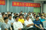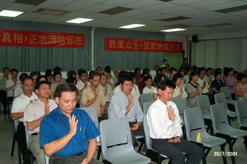 在新闻发布会之后,大法学员们在新加坡宗乡总会的会议室里举办了内部的纪念会,主题为“全面讲清真相,正念清除邪恶,救度众生,坚定地维护法”。共有一百多名新老学员参加。大会开始,由主持人宣读纪念会致词,鼓励大家在正法进程中多学法,发挥大法粒子的作用。致词完毕,全体学员发正念,“法正乾坤,邪恶全灭”。之后,朗读师父的几篇新经文。接下来,用电脑放映了十五分钟的“正法之路”幻灯集,回顾了大法在中国、海外及新加坡洪传的经过以及两年来各国学员善意讲清真象的伟大历程。伴着优美的普度音乐,学员们静静地观赏着一张张图片,心潮起伏。最后,由学员选读了五篇中英文的明慧稿件,激励大家向精进的同修们看齐,更好地讲清真相,救度世人。纪念会在学员们的热烈掌声中结束。