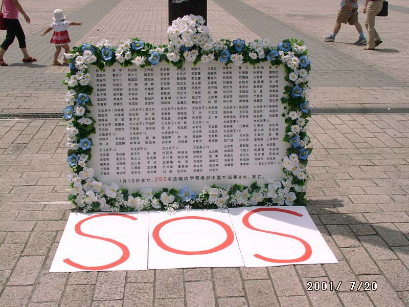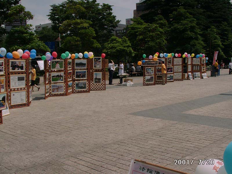 今天上午(7、20)来自日本东京、大阪、广岛、长野、新泻、山形等地约70多名学员聚集在日本东北重镇仙台市,举行了抗议江泽民集团暴行、SOS紧急救援国内受虐待学员的一系列活动。早上五点左右学员们就开始在仙台著名的市民广场布置法轮大法图片,准备在日本举行的第二期法轮大法正法之路图片展。学员们纷纷积极参与,在八点半左右把要展出的图片安排停当,摆放好日、英、中法轮大法真象报纸、法轮功学员人权遭侵害的真象录像带和印有“法轮大法”、“真善忍”和日本法轮大法网址的书签、扇子等纪念品。学员们边布置边向路人发放报纸及纪念品。不时有人驻足观看,有人在呼吁停止镇压虐杀的签名单上签了名。九点全体学员在广场齐发正念,默念“法正乾坤,邪恶全灭”,然后炼习了五套功法。中午十二点半左右开始陆续有<<每日新闻>>,<<读卖新闻>>,<<产经新闻>>及<<河北新报>>等一些著名的日文报纸的记者到场采访学员。学员们向他们介绍了开展今天活动的目的,即向日本东北地区的人民介绍法轮功,同时呼吁日本各界本着同情和善念紧急救援中国受虐待的法轮功学员。记者们还向学员们询问了诸如有关江泽民集团为什么迫害法轮功等有关问题。他们说今天的消息明日即见报。
