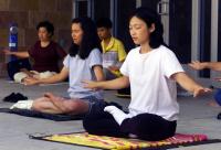 法轮功学员说这个结合了东方宗教理论和缓慢打坐锻炼的运动在美国有上万名追随者,其中大多数是华裔。在华盛顿地区,法轮功学员在公园,在国会山,甚至在地铁站外面炼功。