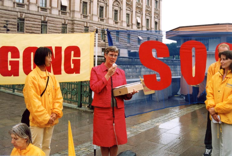 | 瑞典学员在记者招待会上发表声明 | 市民对法轮功的人权问题表示极大的关注。 |