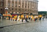 | SOS步行活动抵达瑞典首都的议会广场 | 瑞典学员在议会广场召开“紧急营救在中国被迫害的法轮功学员”记者招待会 |