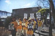 一路上不少行人积极索要资料,纷纷表示同情,许多汽车司机鸣喇叭并友好的招手以示支持。学员所带的"讲真象"资料全部发完。一位西人男青年刚好从商店走出来,马上加入游行队伍并对学员说:"只有独裁者的统治下,才会发生这样的事情"。队伍经过中国旅行团的大轿车,一名先看到的女孩马上告诉所有的人,大家纷纷拍照并流露出同情的目光。