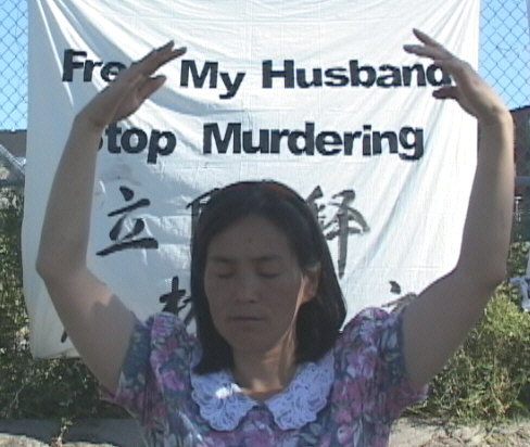 为营救丈夫林慎立、呼吁SOS“紧急援救中国大陆法轮功学员”---李进宇将在中国大使馆前持续静坐两周