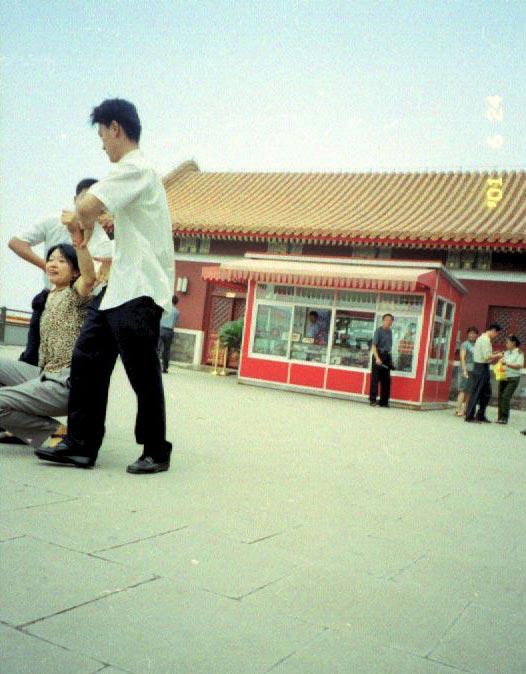 那些警察吓坏了,好一会才冲向我们,当着外国游客的面对我们拳打脚踢。可不管邪恶怎么打,我们一直在呼喊着:"法轮大法好!" 邪恶之徒狠命地把我和姐姐拖到了电梯旁,继续对我们大打出手。他们用拳猛击我的胸部,用脚踢我的背、全身。我和姐姐善意地告诉他们打人不对、善恶必报的因果关系,可他们哪里听得进去,反而变本加厉地更加凶残。打得我喘不过气来,快要窒息了,虽然这样,我和姐姐在这时一点怕心都没有,一直在心里默念恩师的除恶口诀。