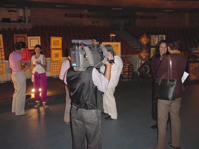 当天晚些时候,我们去了展览会,并得到了一个小展位摆放大法资料,书籍和录像带。他们还特别安排了两个小时的广泛面向公众的功法介绍和信息发布会。炼功其间,巴西最大的电视网络Globo,来到展会,录下了功法表演,采访了许多参观者,然后采访了我们。采访者在得知在中国(对法轮功)的迫害后非常震惊,他们问了很多问题,我们正好能够借机向他们讲清真相。信息发布期间,我们简明地介绍了大法,然后参观者做了提问。