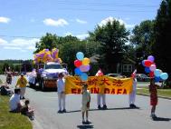 每年七月一日加拿大国庆节,剑桥市总要举行据称为加拿大“最大的”国庆游行。周边城镇的居民都会赶来参加这一欢乐的活动。由于市政府要求较高,申请不易获准,而且参加团体要交约200加圆的管理费。为了利用这一好机会更好地洪法,让更多的人知道大法的伟大,了解江泽民犯罪集团对大法弟子的残酷迫害,激发人们的善心,认同大法,我们及早就提出了参加国庆游行的申请。于星期二收到了许可通知,但要求交纳管理费,此时离游行日期仅有五天。尽管时间紧,但考虑到多伦多弟子的支援,以他们丰富的经验,相信会成功的。然而,联系后得知,多伦多及其周边城市在这一天有多个类似的活动,不能参加我们的活动。遵照师父《致北欧法会全体学员》所讲“在讲清真相中,不要等,不要靠,不要指望外在因素的变化。”尽管我们人手少,也应利用我们自身的条件尽最大努力搞好这次活动,做到“用理智去证实法、用智慧去讲清真相、用慈悲去洪法与救度世人”《理性》。星期三我们又得到通知,被允许免费参加,一切都是师父安排来考验我们的。于是开始了紧张的筹备工作,租车,设计彩车,排练队形,人人献计献策,两位十一、二岁的小弟子把她们心爱的饰物和漂亮的衣服也带来了。