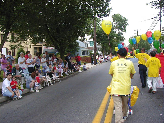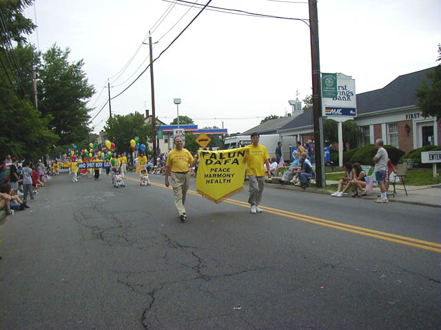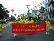 【明慧网2001年7月8日】7月4日来自新泽西中部的30多名法轮大法弟子参加了新州最大的游行之一─米尔市美国独立日庆祝游行。