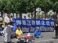 学员们在声明中说:今天我们在这里,将长途跋涉,横跨美国大地,发出紧急呼救的请求,请求你们帮助救援正在遭受迫害和酷刑的中国法轮功学员。