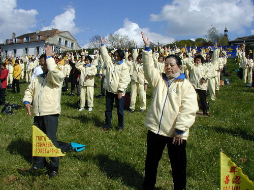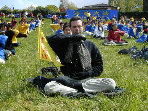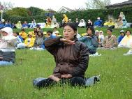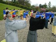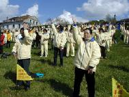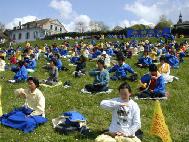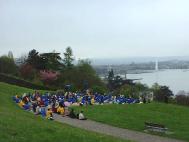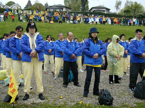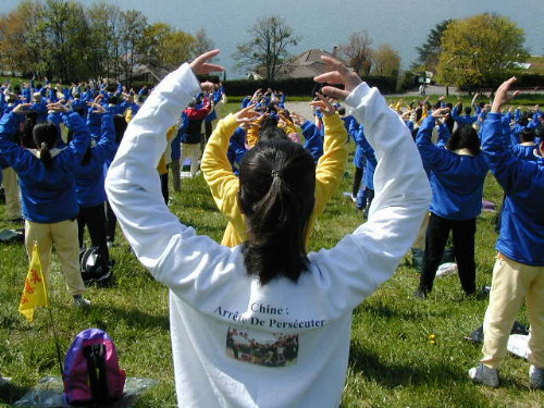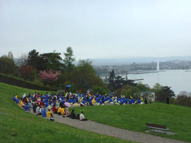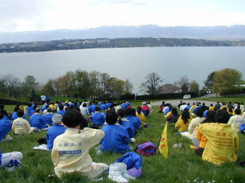 法轮功学员在日内瓦湖边再次集体炼功