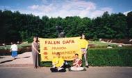 紧接着新闻发布会的是洪法活动,引起许多波兰市民很大的好奇与关心。由于有几位德国的修炼者担任翻译,使得来此参观的德国旅行团的游客也有机会听到报告。我们在西格蒙纪念碑前的广场上和著名的公园里炼功,其间多次乌云满天,而且刮风很大,但末了都没下雨。