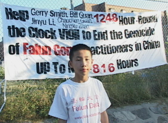 来自蒙特利尔的12岁大法弟子、加拿大公民关超尘决定从8月13日起静坐两周。他无法理解很多善良的法轮功学员竟被警察迫害致死!他说:“中国的警察叔叔、阿姨们,我不理解你们为什么干这样的大坏事?我在中国上幼儿园的时候,老师告诉我,警察叔叔、阿姨是专门抓坏蛋和保护好人的。你们现在为什么专门迫害好人呢?你们这不就变成坏人了吗?看到你们变成这样我很着急。从8月13日到8月27日,我和我妈妈要在渥太华中国大使馆前静坐两周,把你们所干的坏事告诉所有的人,我不希望你们继续干坏事。”