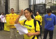 报导说,这两位步行者从政府大厦出发,他们在那里递交了一封给爱尔兰总理阿和恩(Ahern)先生的信,敦促他在中国总理下月访问爱尔兰时向他提出赵明的事件。