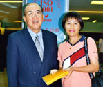 还记得其中一天的晚餐,我们在餐厅吃饭,隔壁桌的一群人正在为长辈庆生,就在他们准备唱生日快乐歌前,好心的问了我们一下:「这样会不会吵到你们?」我们赶紧摇头说不会,而且还热心地帮他们一起拍手唱生日快乐歌。后来,他们拿了几片生日蛋糕要请我们吃,于是我们顺手送几份简介给他们,其中的一位先生,竟很热心的帮我们分发简介给其他在场的人,无形中也做起了大法的工作。我想,就是他当初那一点凡事为人考虑的善念,种下了他得法的机缘。