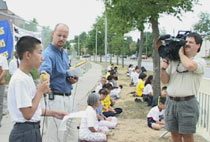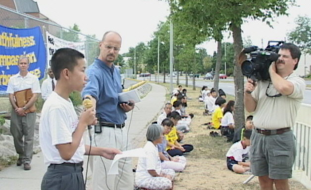 【明慧网2001年8月17日】8月13日起,来自蒙特利尔的12岁的中学生关超尘和他的妈妈一起,继李进宇女士之后,开始了为期两周的大使馆前连续24小时静坐。他无法理解很多善良的法轮功学员竟被警察致死!他说:“中国的警察叔叔、阿姨们,我不理解你们为什么干这样的大坏事?我在中国上幼儿园的时候,老师告诉我,警察叔叔、阿姨是专门抓坏蛋和保护好人的。你们现在为什么专门迫害好人呢?你们这不就变成坏人了吗?看到你们变成这样我很着急。从8月13日到8月27日,我和我妈妈要在渥太华中国大使馆前静坐两周,把你们所干的坏事告诉所有的人,我不希望你们继续干坏事。”