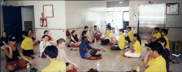 早在一两个月前即从消息知道本活动需要一些通英文的大专生帮忙,心中也很想来宜兰,但由于人心的作用,不是把自己摆在大法之中,该做什么就做什么,因此直到出发前居然还会有念头出现说:我们去宜兰到底帮得上什么忙啊?会不会增添他们的麻烦啊?宜兰学员会不会对我们有什么想法啊?就这样,勉强把自己思想控制在洪法这一件事情上,其他什么都不想的情况下,我们南部三位学员便先去宜兰学员家住,与其他地区学员一同准备教功的事。