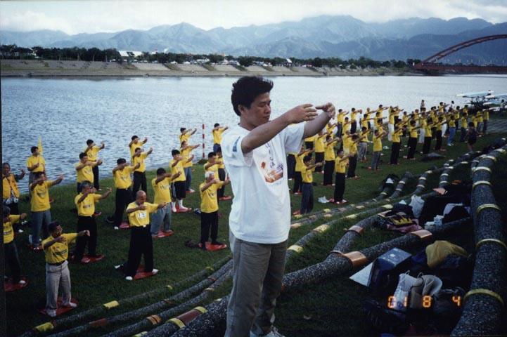 2001年宜兰国际童玩节因有很多外国团队来台表演,因此而有机缘被安排向一些国家的表演团教功,这是一个非常难得的对外国人洪法,同时对自己本身来说,修炼提高的因素就在其中。
