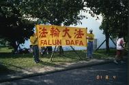 在国外团队方面,第一天因台风取消教功,第二天是对贝南,一个法语体系的非洲国家。他们多是小孩子,因为我们人手多,除了台上的两位负责人,其余几乎是一对一的教,就好比教小朋友班一样。因为语言不通,我们只有靠标准的动作当作唯一沟通的方式。在炼第五套功法时,其中一位青年学的好认真,我们只教一次,他在私底下却炼了好几次,连休息喝水的时间也在复习,动作也记起来了,他真的很喜欢法轮功。后来贝南的团队领导看到我们都叫"Falun Dafa!(法轮大法)",我们也回应"Good!(好!)"。我感到大法已在他们心中扎下了根。