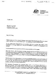 由此可见,澳洲政府同你一样也对法轮大法在中国的待遇表示担忧。在此方面,我完全支持亚力山大.唐纳议员的观点。