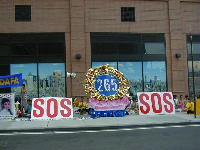 【明慧网2001年8月20日】为了进一步呼吁紧急救援中国大陆被的法轮功学员,特别是危在旦夕的130名被非法关押在马三家劳教所的学员,纽约地区的法轮功学员8月18日下午4点,在纽约市的中国领事馆前开始了130小时的静坐请愿。18日下午,近二百名来自纽约,新泽西州和宾州的学员陆续来到领馆前炼功和发正念,声援参加静坐活动的学员。这一静坐活动将延续到8月24日早晨,另有个别学员则将静坐265小时,以悼念被江泽民政府残酷迫害致死的265位法轮功学员。