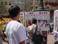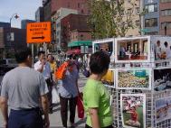 同时,在唐人街另外三个繁华地段,学员们也摆上了小桌子,放上资料和图片。向世人发真象资料,效果也非常好。前几天气象台还预报今天会下雨。今天天气特别晴朗。到了下午,空气中带着一丝潮湿的气息,却一直没有雨下来。天空晴朗依旧。