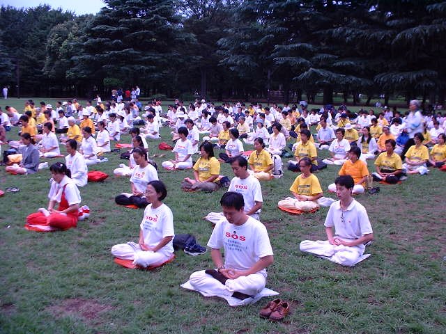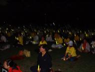 晚上回到代代木公园举行了悼念死难的263位同修的烛光晚会。学员们整齐地排坐在草地上,聆听着“普度”、“济世”音乐,两位学员分别用中、日文朗读了控诉江泽民残酷迫害国内法轮功学员、悼念同修、唤醒世人良知善念的文章。大家手执萤光棒,默默地哀悼可敬的同修,在又一次齐发正念之后结束了一天活动。