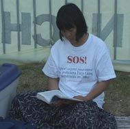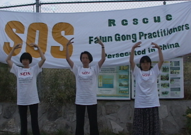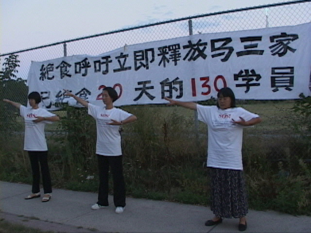 1. 三名加拿大蒙特利尔学员(左起:杨冬冬、李智莉、刘进芝)于8月21日下午开始在渥太华中国大使馆前绝食请愿。