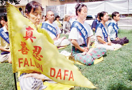 报导说,在华盛顿的绝食者们指控江XX主席操纵了这场对法轮功的“野蛮”镇压。他们继续绝食和除水之外的饮料,在使馆对面的一个小草坪上静静地坐着炼功。