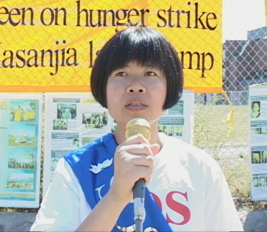 目前,在中国辽宁省马三家劳教所有130位大法弟子,仅仅因为不放弃对宇宙大法“真善忍”的信仰,就被江泽民邪恶集团非法拘捕劳教,超期关押不放,进行残酷的精神迫害和肉体折磨,他们的生命受到严重的威胁,在万不得已的情况下,他们进行绝食抗议要求释放,到今天已经21天了,生命危在旦夕。在此万分危急、人命关天的情况下,我今天(8月21日)开始在中国大使馆前进行绝食抗议。强烈要求中国政府立即释放这130位随时可能失去生命的大法弟子,紧急呼吁全世界所有善良的人,各国政府,国际组织,行动起来帮助我们共同制止江泽民邪恶集团对大法弟子的虐杀,立即停止对法轮大法的迫害,如此罪恶的行径是一切善良的人所不能接受的。