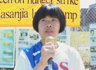 我热爱生命,有温暖的家,有爱我的丈夫,有需要我的小女儿,我之所以能放下我个人的一切,到这里来为别人的生命绝食请愿,本身就是对法轮大法是正法,是教人向善的高德大法的有力证实。修炼前,我是一个极端自私自利的人,是一个为获取个人利益不惜伤害他人的人。是法轮大法的法理彻底改变了我,明白无私无我,先他后我才是生命应该努力的方向。当我平静的下这个决定时,我被自己感动,感谢法轮大法给了我如此的境界。
