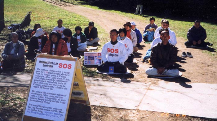 当地法轮功发言人丹纽克拉说,堪培拉有25个法轮功学员,但全部绝食者都自愿来自悉尼。昨晚,任职电器工程师的克拉先生说,绝食是为释放被关押在马三家劳教所的学员的一致行动。