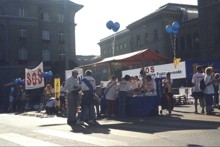 在新闻发布会上,还宣读了七位国会议员与州议员的来信、来电,他们一致谴责对法轮功学员的镇压,支持法轮功学员SOS紧急救援行动,呼吁瑞士政府和国际社会制止镇压法轮功的犯罪行为。11:30来自瑞士各地的五名大法弟子与议员代表进入联邦政府大厦。联邦外交部的代表听取了五位弟子关于法轮功学员在中国遭受迫害的最新情况的介绍,并阐述了政府对法轮功问题的立场(见联邦外交部的正式新闻发布稿),据政府官员介绍,这是联邦政府的代表第一次正式在政府大厦内接待这样的群众组织代表并发布正式的新闻稿。