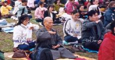 下午,天气一直阴沉沉的,风也越刮越猛,时而还夹着雨。但是,学员们迎风而坐,单手立掌,正念除恶。在正与邪的较量中,学员们决心用自己的承受,强烈要求江泽民政府停止对所有法轮功学员的迫害,唤醒更多的世人站出来支持正义。